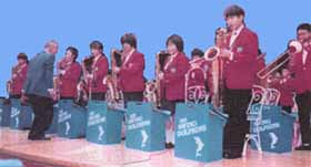 週休2日制移行を背景に、子供たちに有効な文化活動の場を提供するものとして、気仙沼市内のアマチュアジャズミュージシャンたちがそれまでの枠を超えて協力しあい結成した団体で、小学5年生から中学3年生までの子供たちによるかなり本格的なビッグバンドです。 仙台の定禅寺ジャズフェスティバルへの出演、ディズニーランドでの演奏、プロのジャズミュージシャンとの交流やジョイントコンサートなど、めざましい活動を続けています。 |