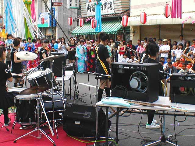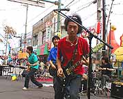 ![]() ガンガンとばせ! 通りは軽音ファンでいっぱい |