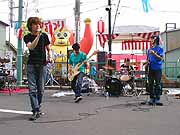 ![]() 鼎っ娘も応援 手前はギターの藤田君 |