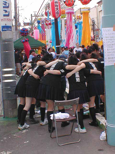 ![]() スクラムを組んで気合入れ! なんかイイネ(^^) |