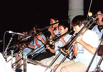 週休2日制移行を背景に、子供たちに有効な文化活動の場を提供するものとして、気仙沼市内のアマチュアジャズミュージシャンたちがそれまでの枠を超えて協力しあい結成した団体で、小学5年生から中学3年生までの子供たちによるかなり本格的なビッグバンドです。 仙台の定禅寺ジャズフェスティバルへの出演、ディズニーランドでの演奏、プロのジャズミュージシャンとの交流やジョイントコンサートなど、めざましい活動を続けています。 |