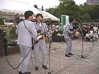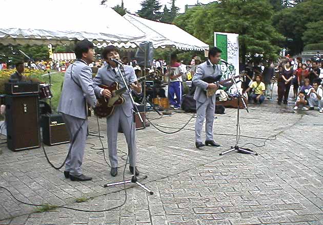 奥の野外ステージでは、外人さんの3ピースバンド。誰の曲だか分からなかったが、
