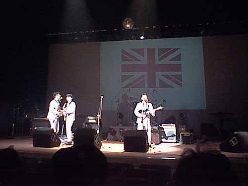 ユニオンジャックをバックに歌うビートラス。さまになってますね。