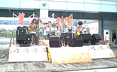 各地のライブハウスで鍛えられている重さが感じられました。でも演奏は雨のため、最後の曲まで出来ませんでした。ザンネン